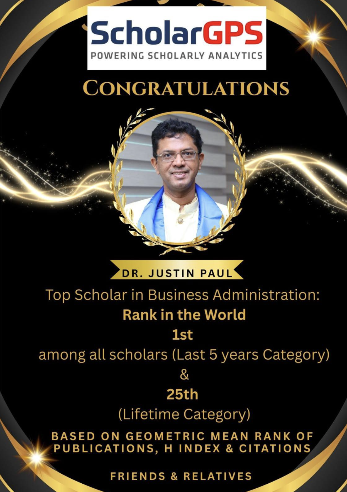 Dr. Justin Paul, Professor of Business Administration at the University of Puerto Rico, has been ranked No. 1 globally in the field of Business Administration by ScholarGPS, one of the world’s most comprehensive academic analytics and ranking platforms. The ScholarGPS …