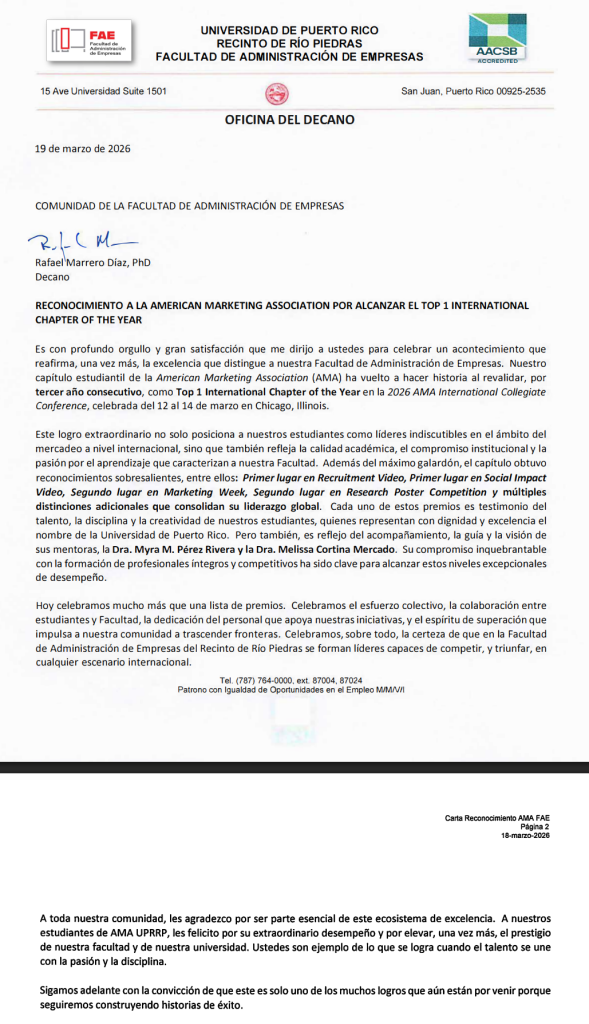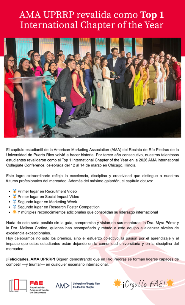 Este año marca un momento histórico para nuestra Facultad: celebramos un siglo de excelencia académica, crecimiento y compromiso con nuestra comunidad. Durante 100 años hemos sido espacio de formación, innovación y transformación, impactando generaciones de estudiantes que hoy dejan huella en Puerto Rico y el mundo.