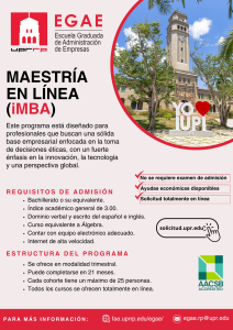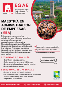 La Escuela Graduada de Administración de Empresas (EGAE) de la Universidad de Puerto Rico Recinto de Río Piedras ofrece programas académicos de excelencia diseñados para desarrollar futuros líderes empresariales. Ofrecemos dos programas de maestría en administración (MBA por sus siglas en inglés); el programa flexible/tradicional que se ofrece en horarios nocturnos y el iMBA, que se ofrece totalmente en línea. La EGAE ofrece un doctorado (PhD) en Administración de Empresas en la concentración de Comercio Internacional. Visita las páginas de los programas para más información.