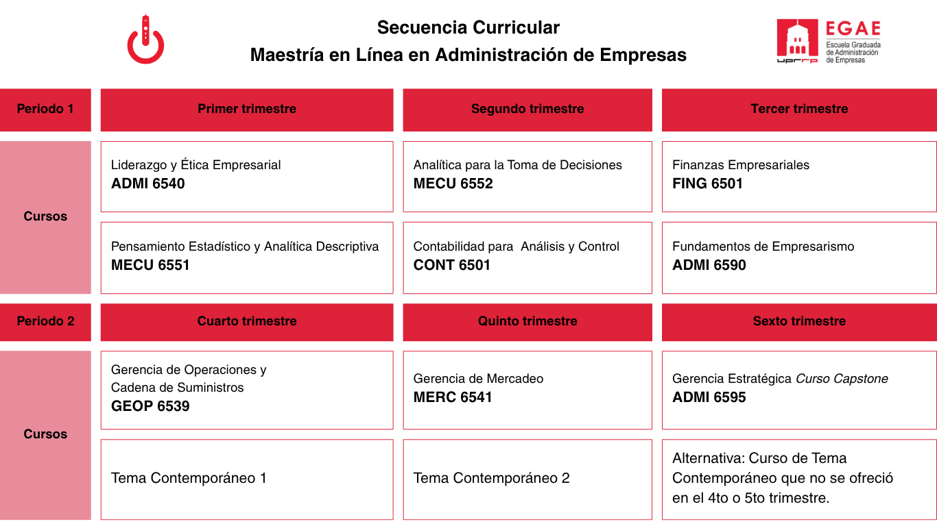 El programa iMBA tiene dos componentes: cursos medulares y cursos de temas actuales/electivas. El programa se completa en 21 meses en formato cohorte. No se pueden reemplazar cursos medulares y todos lo cursos se toman en cohorte.